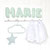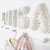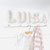 handgefertigte Garderobe mit feinen Buchstaben und / oder Motiven aus Musselin auf weiß lackiertem Vollholzbrett.